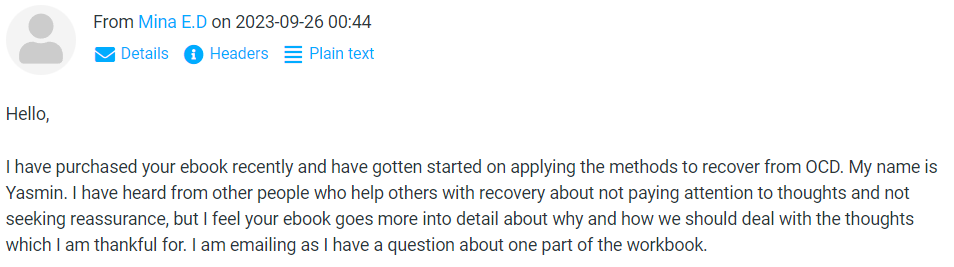 In that ebook, you will get the path that you can use to recover rapidly and live your life the way you want regardless of your OCD theme or situation.